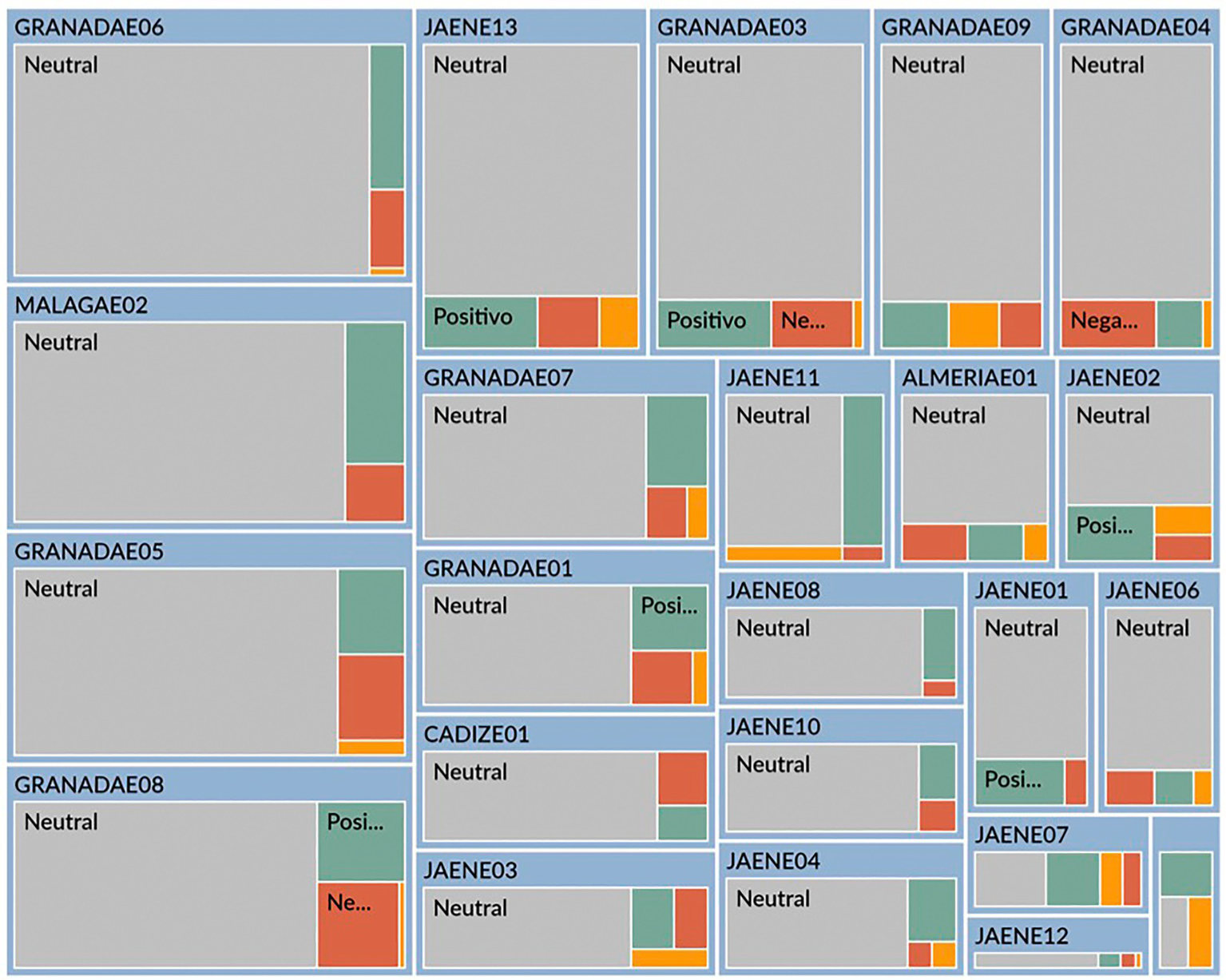 Representation of self-coding based on feelings. Caption (top to bottom-left to right): (A) GRANADAE06 (Neutral), (B) MALAGAE02 (Neutral), (C) GRANADAE05 (Neutral), (D) GRANADAE08 (Neutral), (E) JAENE13 (Neutral), (F) GRANADAE07 (Neutral), (G) GRANADAE01 (Neutral), (H) CADIZE01 (Neutral), (I) JAENE03 (Neutral), (J) GRANADAE03 (Neutral), (K) JAENE11 (Neutral), (L) JAENE08 (Neutral), (M) JAENE10 (Neutral), (N) JAENEE04 (Neutral), (Ñ) GRANADAE09 (Neutral), (O) ALMERÍAE01 (Neutral), (P) JAENE01 (Neutral), (Q) JAENE07 (Neutral), (R) JAENE12 (Neutral), (S) GRANADAE04 (Neutral), (T) JAENE02 (Neutral), (U) JAENE06 (Neutral).