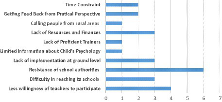 Researchers reported major challenges related to such trainings include resistance and unwillingness of school authorities and teachers to participate in such trainings, as well as lack of resources and finances.