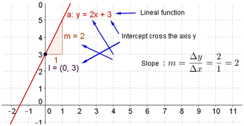 The linear function takes the form y = mx + b, where “x” is the independent variable and “y” is the dependent variable; the coefficient of “x” is the slope (m) – gradient-, and “b” is the intercept that crosses the “y” axis. Figure 1 shows an example of these elements, which are fundamental to applying the concepts of an income statement.