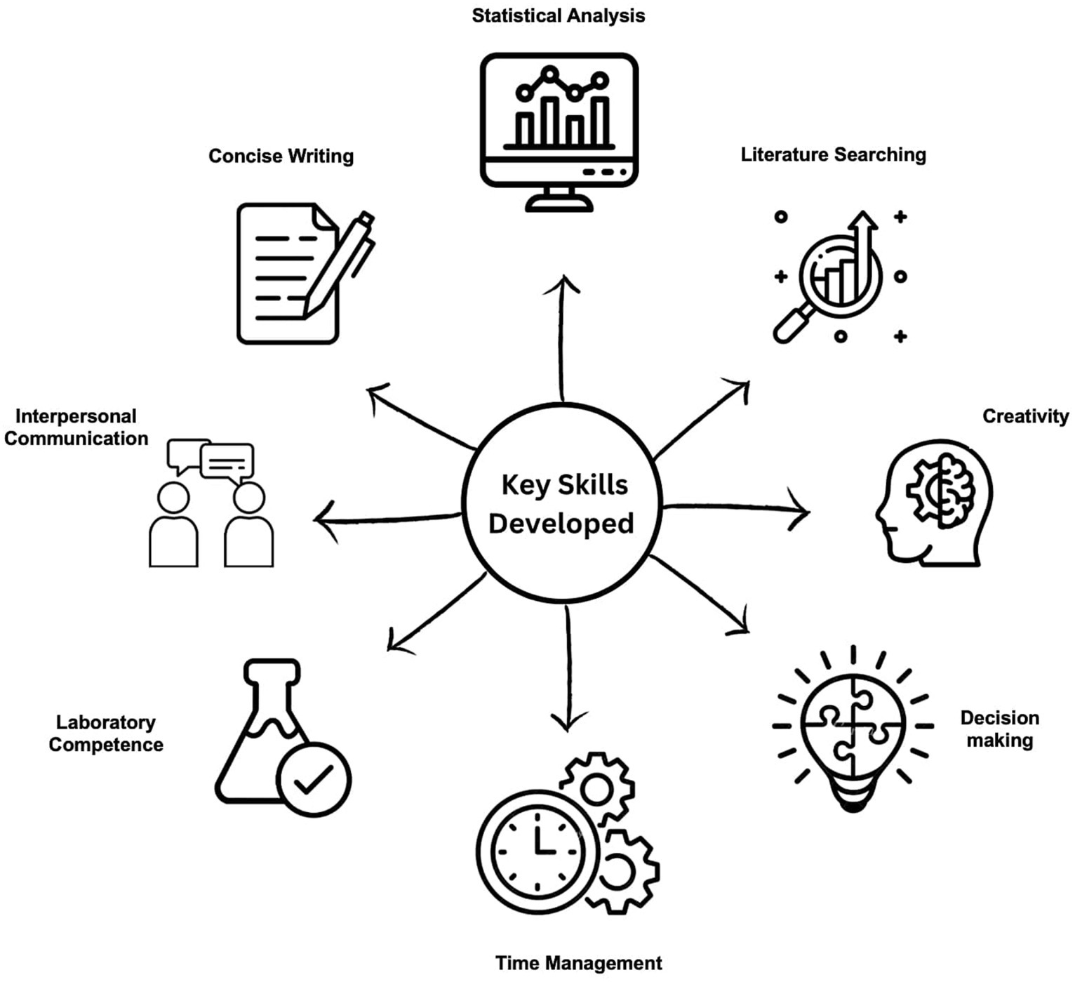 At the core of Biosciences undergraduate programmes are final-year research projects that serve as a culminating experience for students, providing an opportunity for the application and refinement of practical research skills. These skills include technical proficiencies, experimental design, data acquisition, analysis, and problem-solving abilities (Healey et al., 2013). The completion of such projects enables students to hone their research acumen and to effectively navigate the complexities of the research process, whilst also promoting the development of technical proficiency or systematic review skills (Demaria et al., 2018). Ultimately, final-year dissertation projects represent a vital component of Biomedical Science undergraduate education, particularly due to their high credit-bearing and therefore the potential impact on final degree classification. A quintessential module for dissertations offers a valuable learning experience for undergraduate students who aspire to pursue research degrees. Over time, there has been a shift in education from valuing learning for its own sake to emphasising practical skills aligned with job market demands (Rana et al., 2022). Under such circumstances, higher education institutes need to be flexible in their delivery of education and students need to learn a wide range of skills through their degrees.