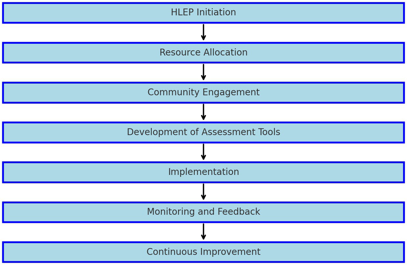 In light of the identified ecological literacy challenges brought about by NCLB Policy, the proposed countermeasure is the implementation of the Holistic Literacy Enhancement Program (HLEP). This comprehensive program is underpinned by a triad of focal points, addressing the multifaceted contextual literacy challenges that have surfaced in this brief. Firstly, it advocates for equitable allocation of educational resources, a fundamental step towards parity in learning environments (Bušljeta, 2013). Secondly, it seeks to amplify parental and community engagement in the educational discourse, recognizing their pivotal role (David et al., 2022). Lastly, HLEP embraces the necessity of culturally attuned assessments (McNamara, 2010), an essential element in honoring and addressing the diverse fabric of the student body (refer to Figure 1 for the HELP flowchart).