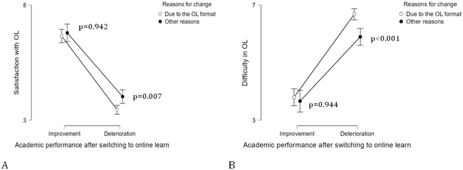 Satisfaction and Difficulty Levels: Two items asked students to rate on an 11-point scale of 0–10 their overall satisfaction with their education and with online learning specifically during the pandemic. Another item asked them to rate the difficulty of studying online using a similar scale.