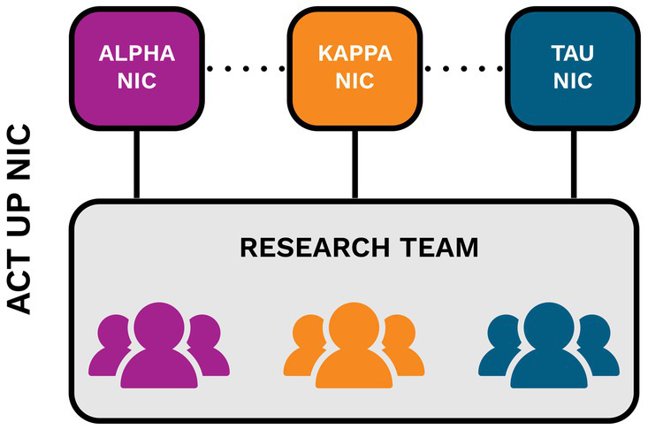 The research team is divided into three subteams, each directly working with one of the local NICs, as illustrated in Figure 2. This leads to, for example, both a Kappa NIC and a research subset working with the Kappa NIC, referred to as the ‘Kappa research team’. At the time of the data collection used in this manuscript, there were 11 research team members who worked together and also primarily with one of the three local NICs: three worked primarily with Alpha, five primarily with Tau, and three primarily with Kappa. Additional members have joined the team since Spring 2023. The research team members are all external to the three NIC institutions.