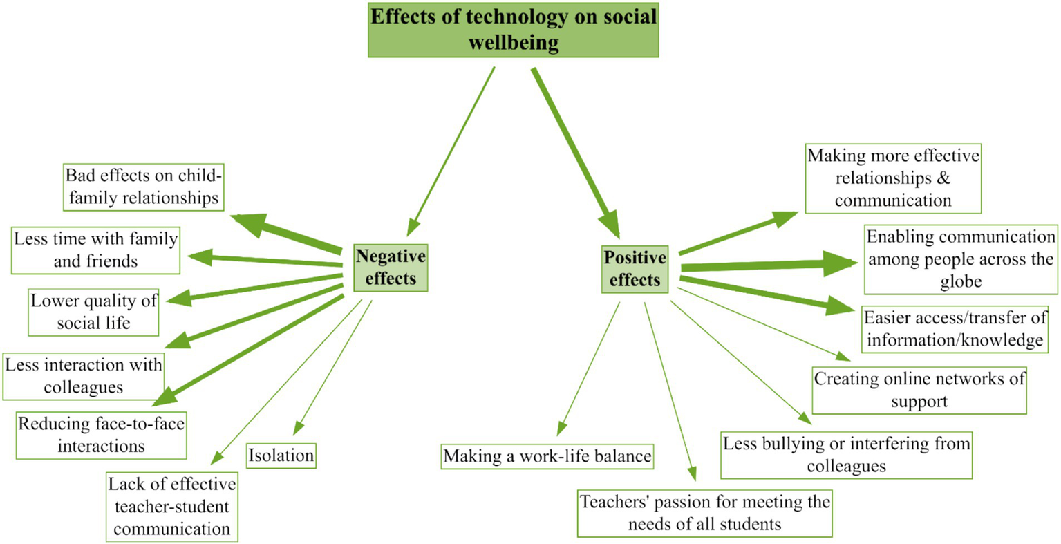 The results revealed that implementing digital tools had positive and negative impacts on teachers’ physical and social well-being. Positive effects on physical well-being were saving time and energy, and brain activation, but exhaustion, increased health risk, and reduced productivity were the negative ones. Besides, teachers experienced positive social well-being, enabling communication among people across the globe, and easier access and transfer of information. Negative social well-being included adverse effects on child-family relationships and reduced face-to-face interaction.