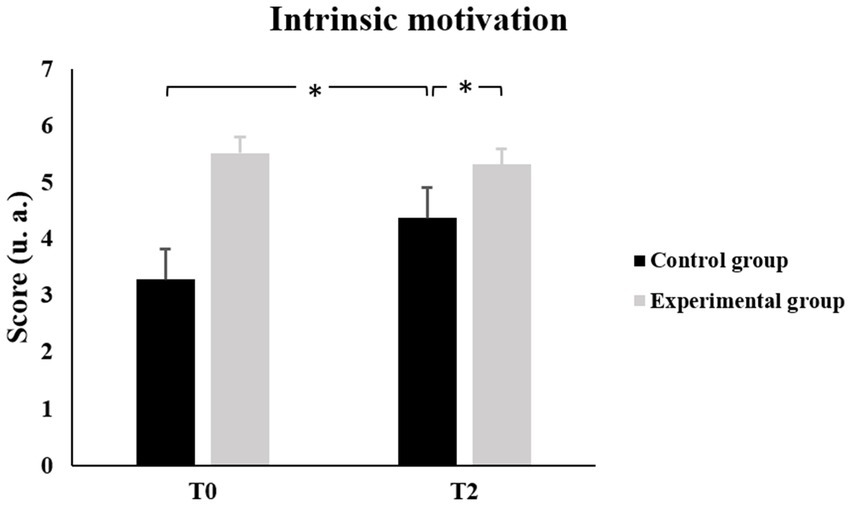 Results of the motivational dimensions in the control group and the experimental group recorded at T0 and T2 are presented in Figures 2–5.