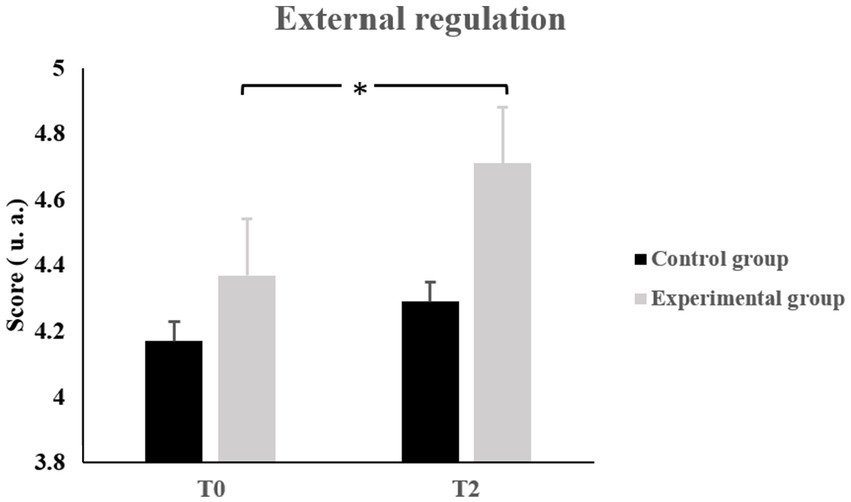 Figure 4. External regulation means and standard deviations. *Statistically significant difference at p < 0.05.