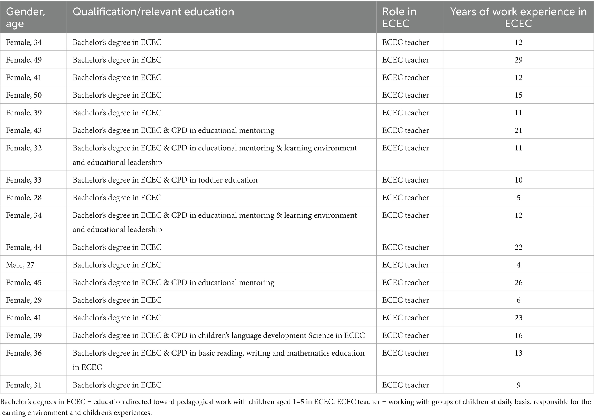 ^With bachelor’s degrees in ECEC, they focus on pedagogical work with children aged one to 5 years in ECEC.