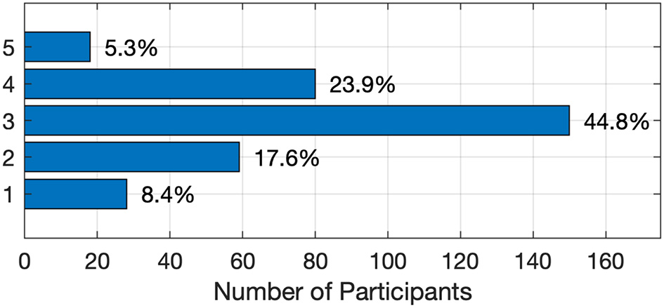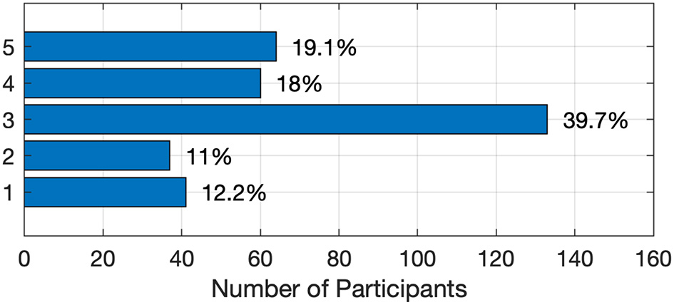 Students were asked, “To what extent do you believe that using AI tools has improved your understanding?” The response scale ranged from 1, representing very low improvement, to 5, representing very high improvement. The results, presented in Figure 3, show that only 19.1% of students felt these AI tools significantly enhanced their understanding of concepts. This suggests that while AI tools may offer convenience and efficiency, their impact on deep learning and conceptual comprehension may be more limited than anticipated.