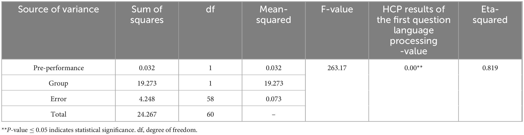 As indicated in Table 3, there is a statistically significant difference between the experimental and control groups in the post-test, with an F-value of 263.17 and a p-value of 0.00, which is significant.