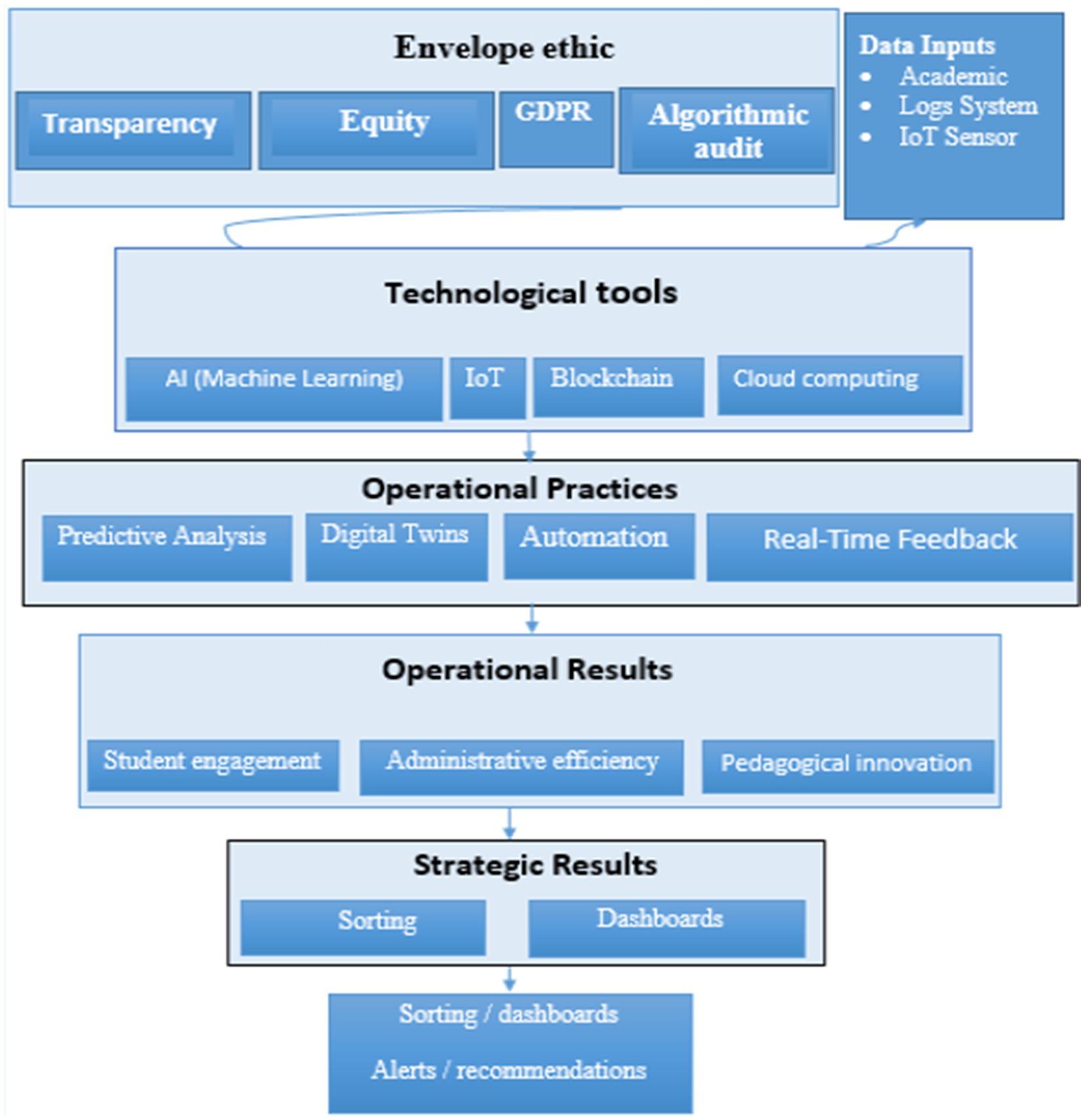 The ethical envelope provides a framework for the use of technology and data in HE, based on fundamental principles such as algorithmic transparency, fairness, respect for digital rights and the conduct of regular audits. However, this dimension raises several challenges, not least the difficulty of defining algorithmic fairness in an operational way and making systems transparent enough to be understood by all users. In addition, ethical audits can entail significant costs. To meet these challenges, several measures would be recommended, such as setting up multidisciplinary ethics committees, drawing up and distributing a digital ethics charter, implementing indicators for detecting bias and fairness in algorithmic systems, and carrying out regular internal and external audits. In this respect, the recent work of Fowler (2023), emphasizes these recommendations by examining the integration of ethics in AI applied to higher education [AI and Ethics in HE, as well as the work of Holmes et al. (2022)], who propose a multidisciplinary framework for tackling the ethical issues linked to AI in education.