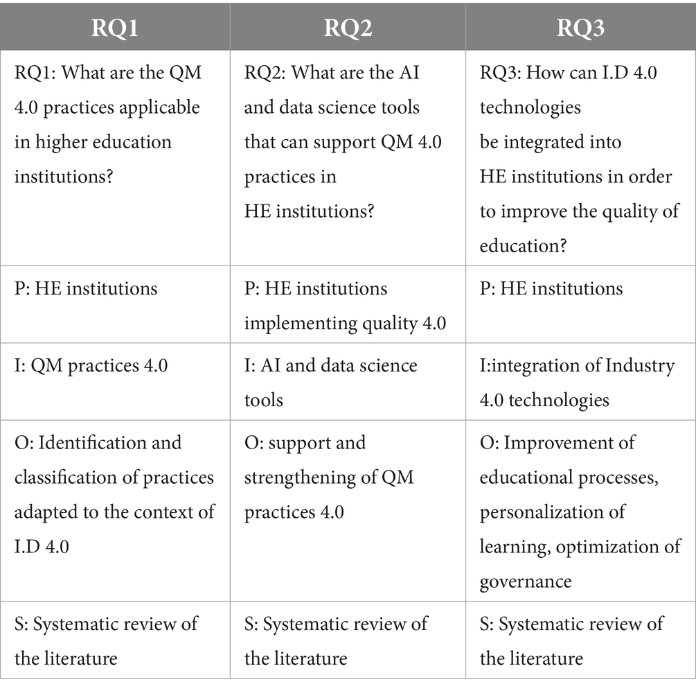 This study is based on a systematic literature review designed to examine the integration of Quality 4.0 practices in the field of HE. It facilitates the identification of gaps in the current literature and the establishment of avenues for future work, while ensuring the rigor, transparency and reproducibility of the scientific approach (Kitchenham, 2007).