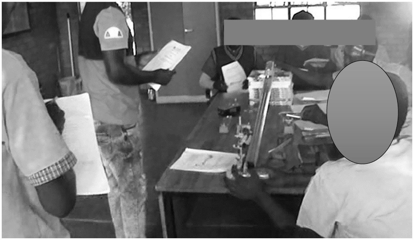 The PST used a teacher-centered method in the experiment lesson. For example, after doing the experiment with some PSLs while others were observing, as presented in Figure 5, he resorted to grouping those PSLs, allowing them to do the experiment in their groups under his supervision, as presented in Figure 6. This was a good choice since learner-centeredness is one of the expected approaches in blended learning (Nkanyani et al., 2024).