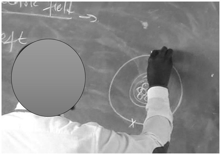Nevertheless, he and some PSLs had some engagements, even though he was not consistent. He did not provide PSLs an opportunity during their engagement with him to elaborate more. As a result, he was unable to provide sufficient room for social constructivism (Cunningham, 2021). Similarly, he used demonstration frameworks (Yang and Lu, 2023) to emphasize his teaching of the content. For example, when explaining the concept of charges in Electrostatics, he used the atomic structure to explain how charges are formed and which sub-atomic particles are involved, as presented in Figure 9.
