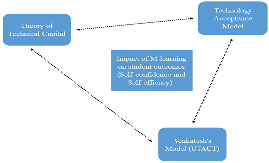 The conceptual framework guiding this research is anchored in three well-established theories: the Technology Acceptance Model (TAM) (Davis, 1989), the Theory of Technical Capital (Yardi, 2010), and the Unified Theory of Acceptance and Use of Technology (UTAUT) (Venkatesh and Bala, 2008) (see Figure 1). These theories provide a comprehensive basis for examining how students engage with technology, what factors facilitate or hinder their digital literacy, and how educational environments can better support the effective use of digital tools.
