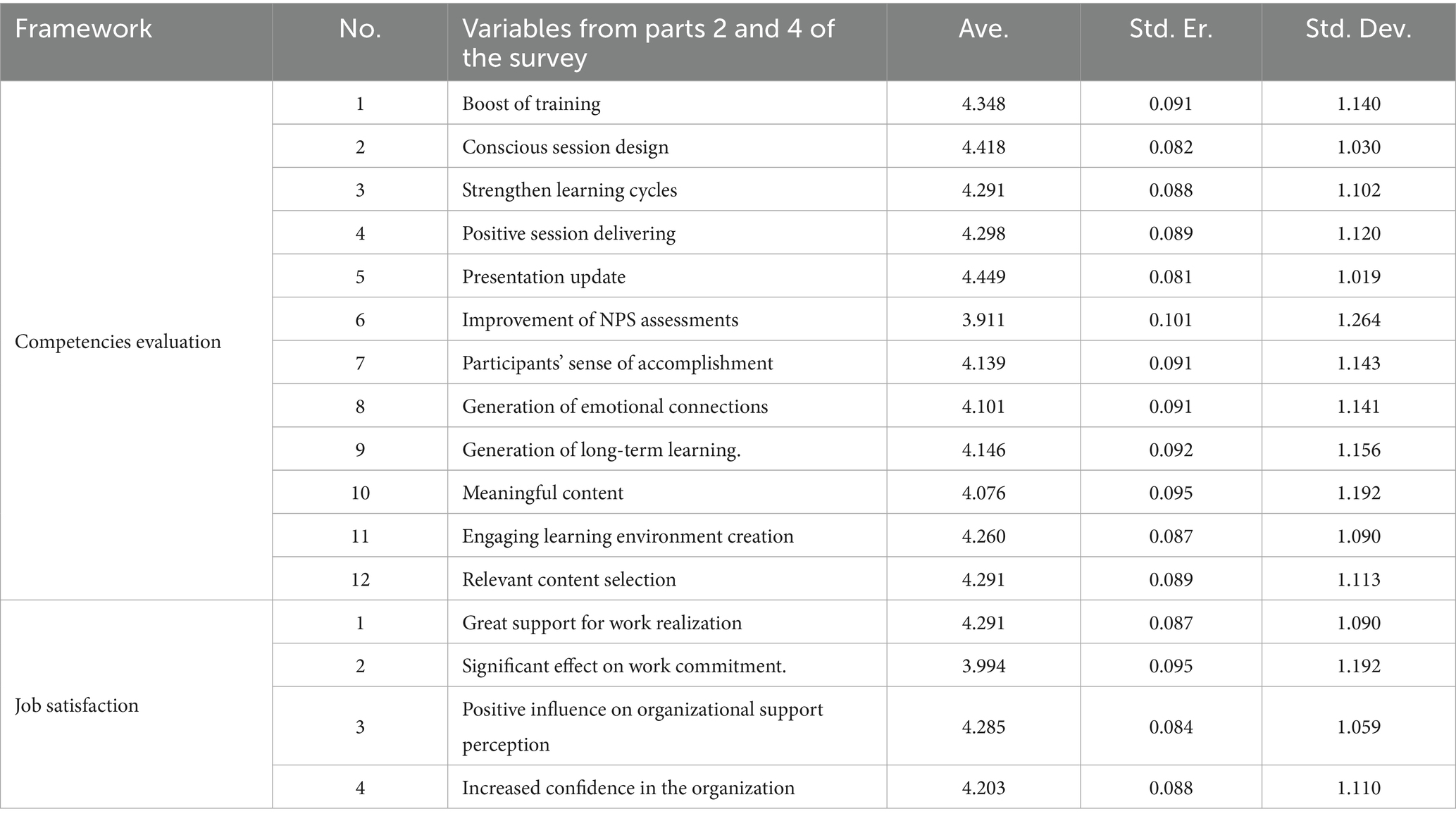 From a job satisfaction perspective, employees who experience a sense of insignificance in their roles may become demotivated and dissatisfied (Scholten et al., 2022). Lencioni’s theory (2007) suggests that factors such as job satisfaction, motivation, and career development positively influence employee performance, whereas anonymity, irrelevance, and lack of measurement contribute to job dissatisfaction. Facilitator training addressing these factors can enhance employee engagement and reduce turnover, particularly in continuing education contexts (Safrit and Owen, 2010; Maity, 2019). Thus, evaluating job satisfaction through the INSPIRA model provides insights into facilitators’ professional motivation and engagement with the Institution.