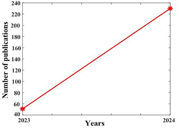 Based on the results from the Web of Science database, an overview of the trends in annual publication output in GAI-related medical education over the past 2 years is presented in Figure 1. In total, 281 relevant articles were found based on the above search method.