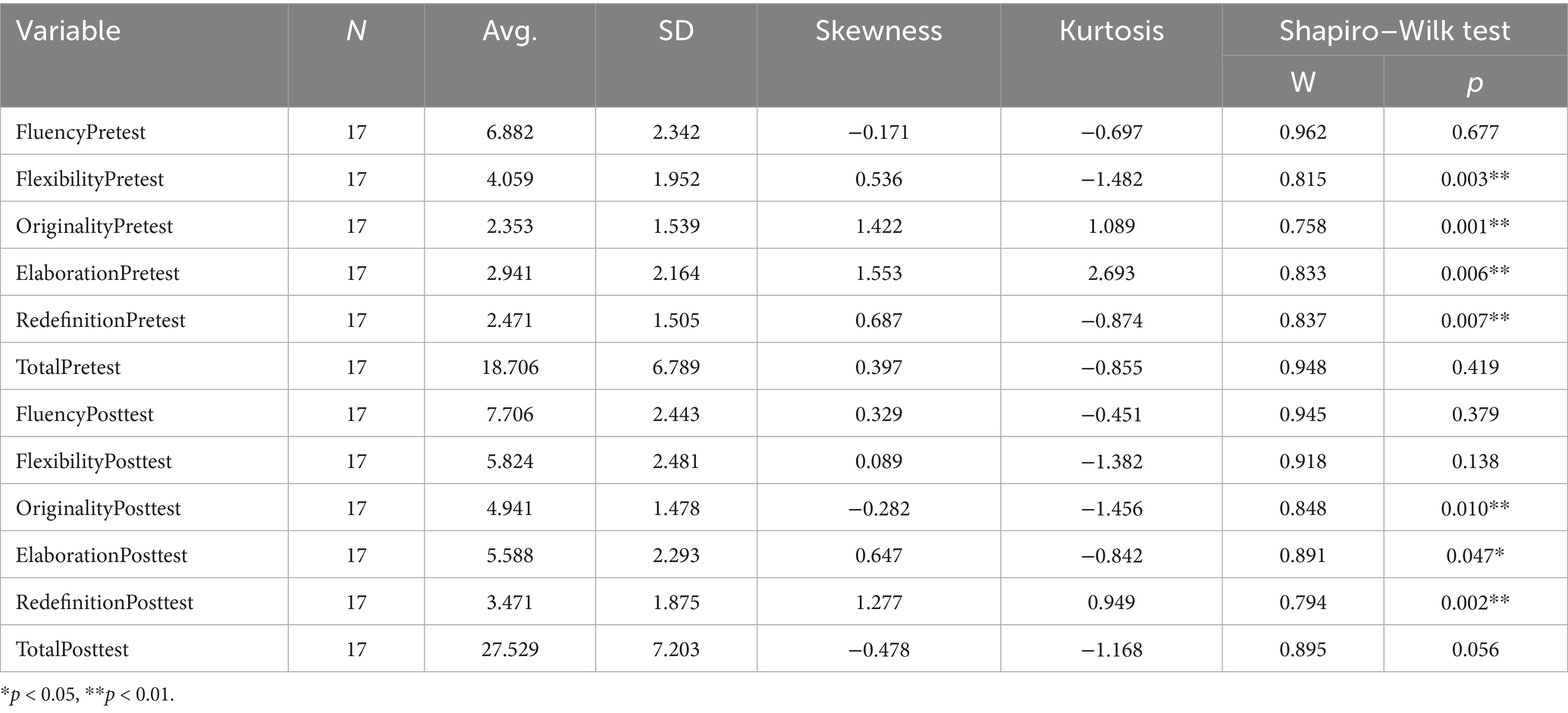 Creative thinking refers to the ability to generate new, valuable and innovative ideas by going beyond traditional thinking frameworks and developing solutions that are both innovative and practical (Runco and Acar, 2012; Sawyer, 2018). In the context of education, creativity is not solely an innate trait but a cognitive skill that can be cultivated through appropriate educational interventions (Cropley, 2015). Creative thinking is often conceptualized as a multidimensional construct. Building on Guilford’s (1967) and Torrance’s (1966) foundational work, contemporary researchers have refined creativity as consisting of several key dimensions: