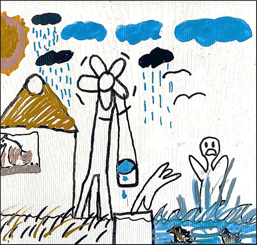 According to Peterson and Friedrich (2023), language learning should focus on the strengths of the individual learner and the style of representation they prefer, which in this study was to draw. The learners’ drawings showed how they developed concepts mentally after the comprehension passage was read; this view of literacy and understanding is not recognised by standardised methods of assessment (Bland, 2012). Phatudi (2015) states that one method to encourage the sound mastery of a second language is to allow learners to express what they know by drawing pictures, as language acquisition and meaning making can take place across different modes (Eisenmann and Meyer, 2018; Magnusson and Godhe, 2019). Young children enjoy drawing and do it willingly. Therefore, drawing was well suited for this age group, that is, the participating Grade 3 learners. Drawing and writing are also related ways of communicating, as the participating learners drew a picture and also wrote a short passage of what they understood about the reading passage. Drawing comes naturally for young children, they do it willingly, and it is the responsibility of adults to create opportunities for young children to express their views or understanding through their drawings (Aluri et al., 2023). Using arts-based methods was empowering for learners as drawings allowed them to construct their own understanding of the comprehension passage, and new forms of knowledge were also produced (Pentassuglia, 2017). What was evident from the majority of the participating learners’ writing, however, was that their ability to write was below the required level for Grade 3.
