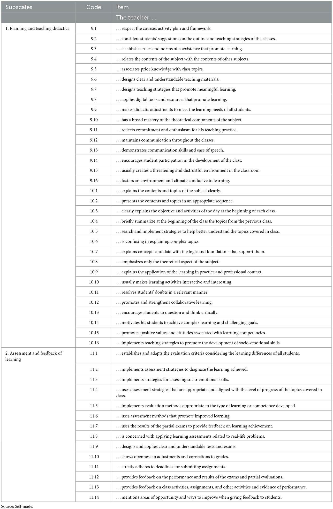Durán-Aponte, E., and Durán-García, M. (2015). Adaptación y validez de un instrumento para la evaluación de docencia universitaria: escala de desempeño docente institucional (EDDI) [Adaptation and validity of an instrument for the evaluation of university teaching: institutional teaching performance scale (EDDI)]. Perspectiva Educacional, Formación de Profesores 54, 75–89. doi: 10.4151/07189729-Vol.54-Iss.1-Art.306