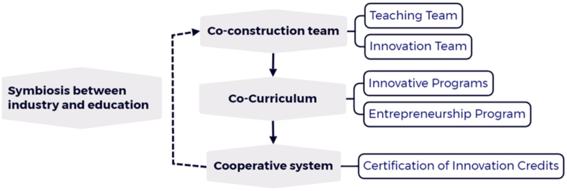 Dual-creation education is an Innovation and Entrepreneurship Education. It serves as a key indicator for assessing the quality of engineering talent development in universities. The core concept of dual-creation education is to foster the all-round development of students through hands-on innovation and entrepreneurship activities, aiming to cultivate well-rounded and strongly competitive talents. Shanghai Jiao Tong University (Tong et al., 2021) has conducted a series of explorations and implemented a series of practices for integrating and restructuring its entrepreneurship institutes and innovation practice education platforms. The university has thereby incorporated the principles of dual-creation education throughout its entire talent development process, establishing a comprehensive dual-creation education system. Similarly, Anqing Normal University (Cao et al., 2024) has developed a well-structured, “step-by-step” dual-creation practice teaching system, spanning from the freshman to senior year. The university has continuously enhanced its comprehensive practice platform and evaluation mechanisms within the teaching process, thereby effectively improving the professional competence and dual-creation capabilities of its students. Hu Aihua College of Chemistry (Chen et al., 2022) has also deepened its reform model and its mechanisms for organically integrating dual-creation education with engineering education. This integration encompasses policy guidelines, faculty development, cultivation models, practice platforms, industry-academia collaboration, credit substitution, assessment, and incentive systems. Hunan Institute of Technology (Wang et al., 2024) uses classroom teaching, practical training, competitions, and social practice for dual-creation education. This approach creates a multi-level, three-dimensional dual-creation education model.