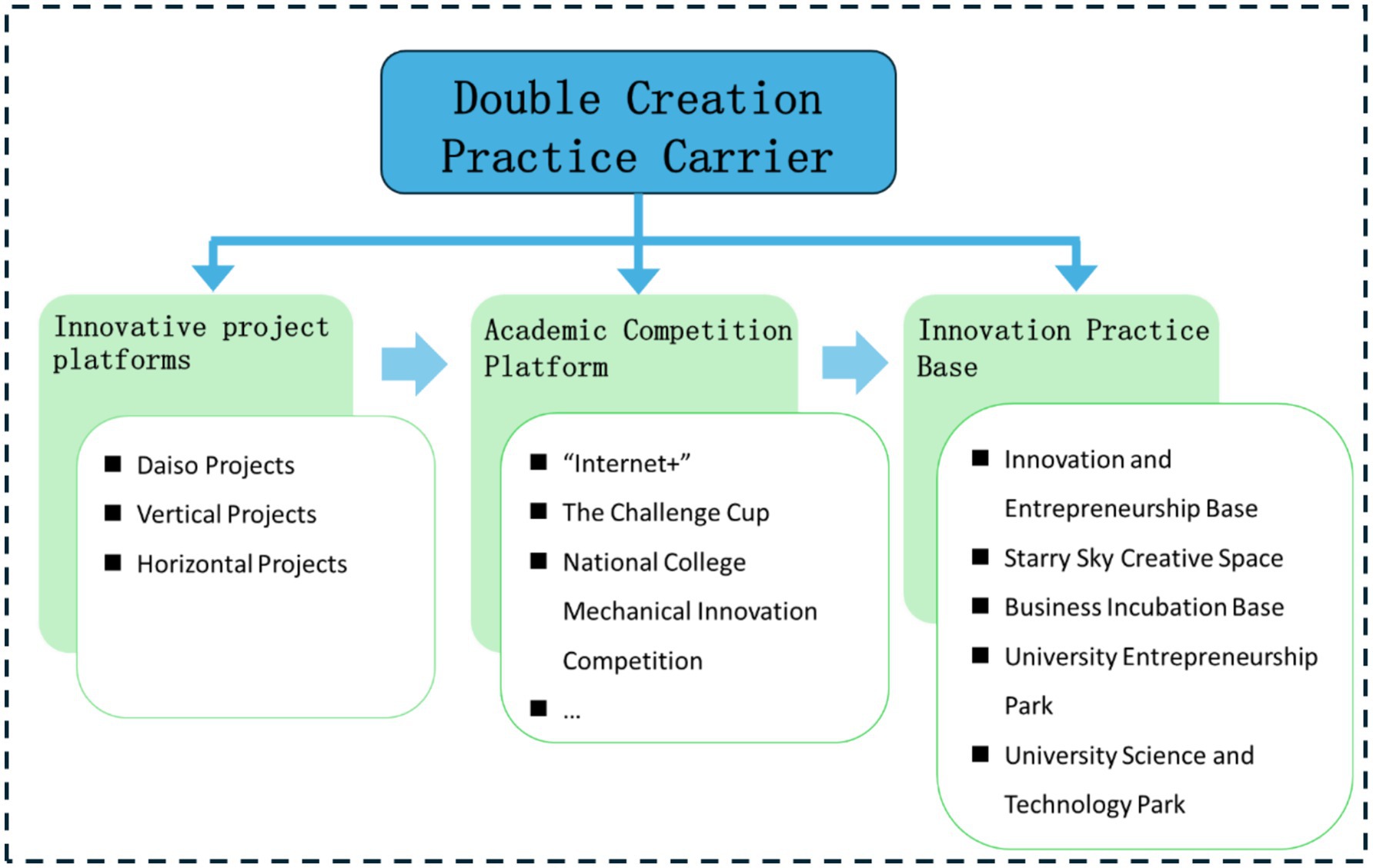 Tong, Y., Chen, J., and Jiang, Y. (2021). Construction of innovation and entrepreneurship education system based on cross innovation practice education platform. Res. Expl. Lab. 11, 193–198. doi: 10.19927/j.cnki.syyt.2021.11.041