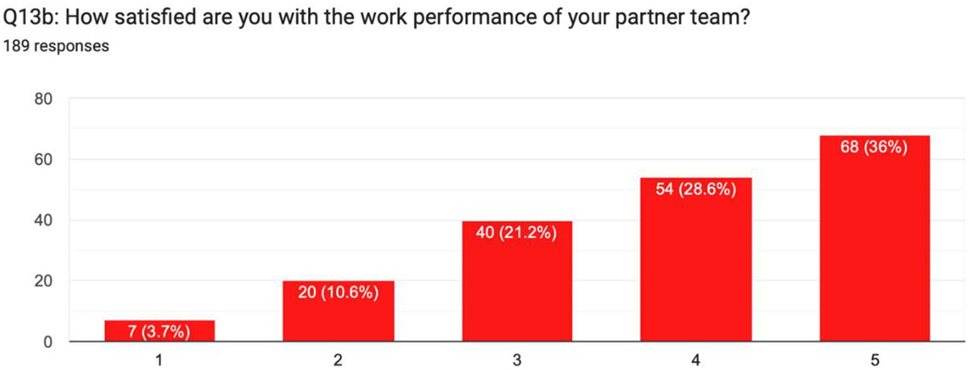 The survey showed that almost 70% of students were satisfied with their work performance in BLIC project, reflecting the positive impact of blended international cooperation on student motivation (Figure 6).
