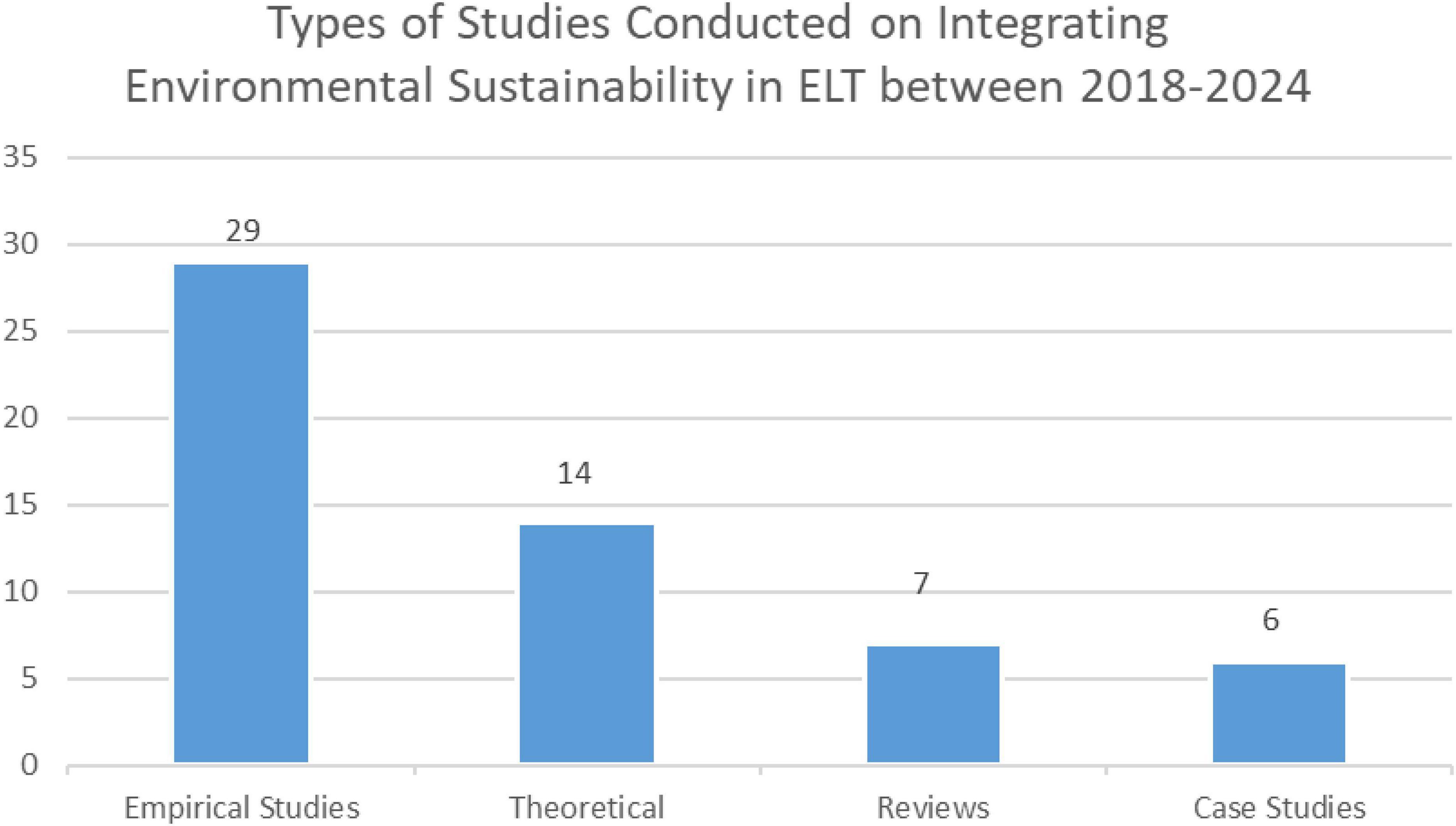Figure 2. Types of studies conducted on integrating environmental sustainability in English Language Teaching (ELT) Curriculum between 2018 and 2024.
