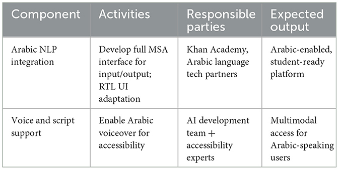 Notably, there are emerging platforms designed specifically for the Arabic-speaking and Islamic educational space. Examples include Noon Academy (Saudi Arabia; AlAteeq et al., 2020), a social learning platform that incorporates Arabic-first content and peer-to-peer tutoring, and Fanar (Qatar), a platform for Arabic-centric multimodal generative AI systems, that supports language, speech, and image generation tasks (Abbas et al., 2025). Although these platforms were excluded from the present evaluation due to insufficient publicly available documentation for ethical and technical assessment, their development illustrates the growing momentum toward culturally aligned AI in education. Future research should include such platforms in comparative analyses to build a more representative evidence base for Arabic-language AI education.