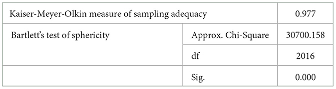 Before the formal survey was administered, a pre-test was conducted with 30 participants to assess the reliability and validity of the instrument. Reliability analysis using Cronbach's alpha confirmed strong internal consistency across all constructs, with alpha coefficients exceeding 0.80 for all scales. For example, learning motivation and satisfaction yielded coefficients of 0.983 and 0.960, respectively. Exploratory factor analysis further confirmed the structural validity of the instrument, with a KMO value of 0.865 and Bartlett's Test of Sphericity achieving significance (χ2 = 7,252.820, df = 2016, p < 0.001). Seven factors were extracted, cumulatively explaining 71.266% of the variance, indicating robust dimensional structure.