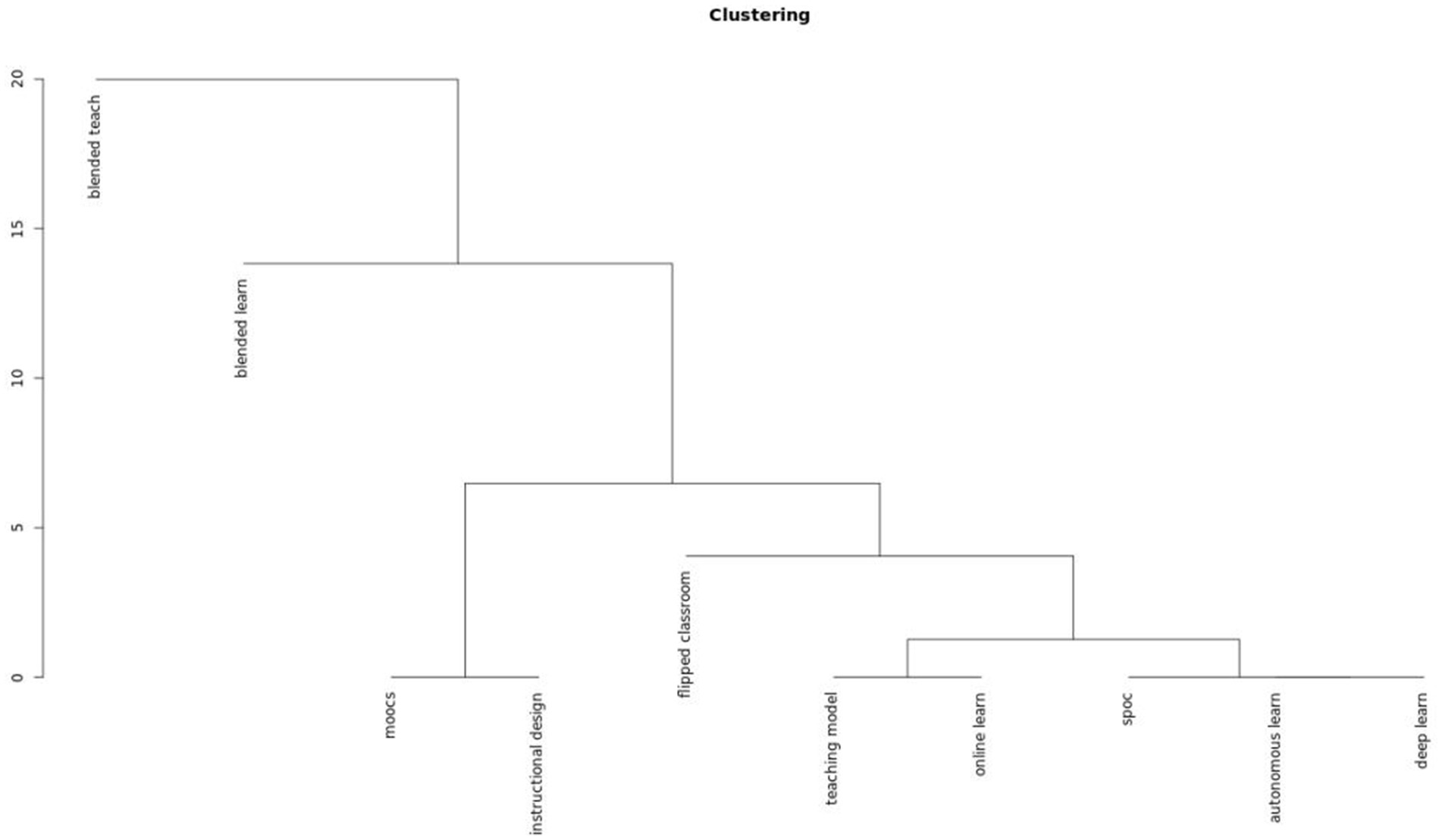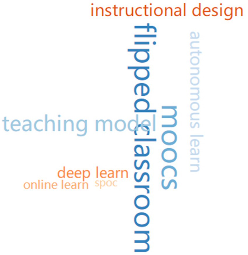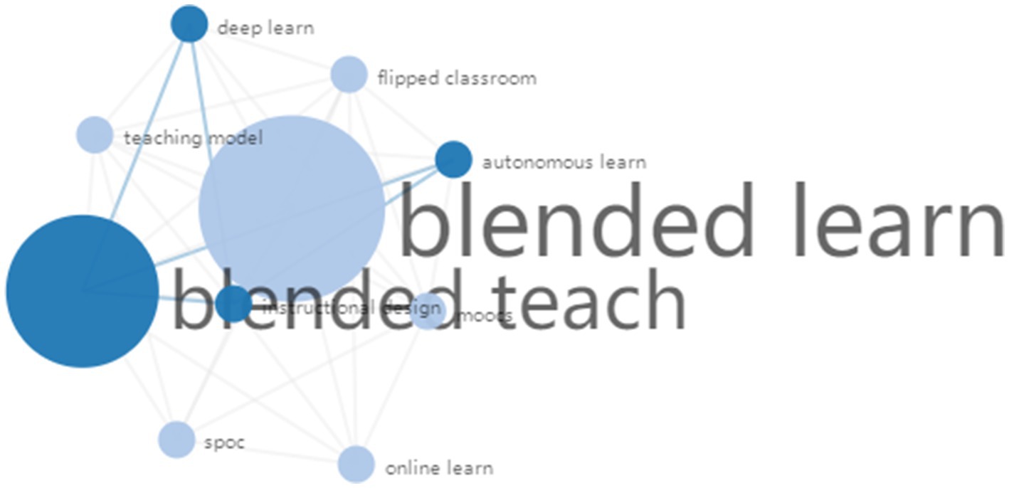 Among the keywords analyzed, MOOCs, online learning, and SPOCs were among the top 10, indicating a close relationship between blended learning in China and these two forms of online learning. The association between these keywords was illustrated in Figure 4.