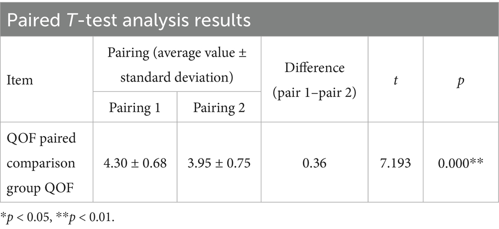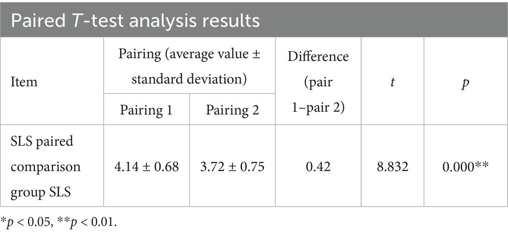 The sample size in this study was sufficiently large, and strict random sampling was employed during data collection, thereby satisfying the assumption of normal distribution and justifying the use of paired T-test analysis. To assess potential significant differences, paired T-test analysis and variance testing were conducted on the collected data from both groups. The measurement scales utilized in this research underwent rigorous review and validation by experts from the Academic Affairs Office of Zhejiang Ocean University, as well as by education specialists across the institution.