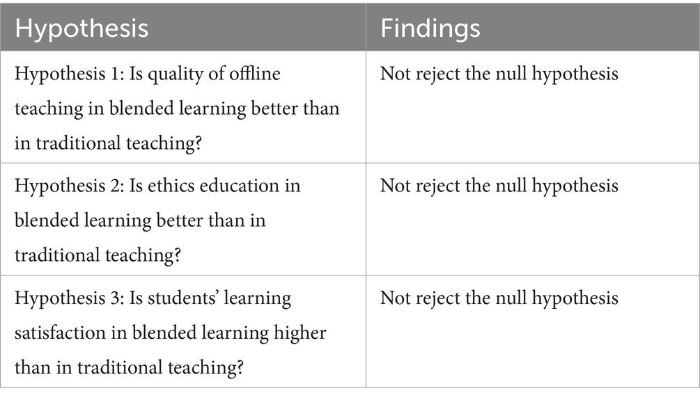RQ2 Hypothesis 2: Is ethics education in blended learning better than in traditional teaching?