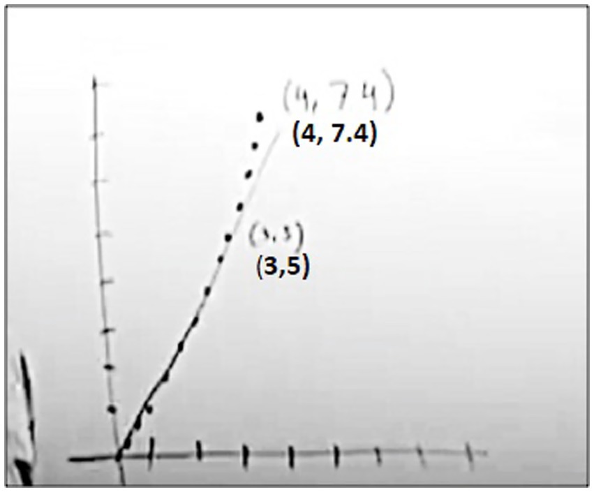 To sum up, Daniel’s analysis of his previous teaching from fall semester and his explanations related to his current way of thinking about teaching CROC revealed some shifts in his way of thinking about teaching the idea, especially his way of thinking about teaching graphing of CROC functions. His previous way of thinking about teaching was primarily based on his own imagery (his first-order model) expressed in excerpt 13 and in Figure 8. Over time, however, his attempts to consider students’ perspective (in-the-moment decentering) and his retrospective reflections about the results of interactions with students (retrospective decentering) supported by PD seminars might have fostered shifts in his way of thinking about teaching the idea. His interactions with curriculum materials, and the instructional resources, that included detailed, conceptually focused solutions and explanations, might have been another source of the shifts in his approach.