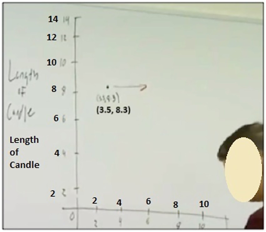 In this excerpt, Daniel deviated from the questions in the investigation by posing a hypothetical scenario and asking students to imagine that “the candle stopped burning.” He then inquired about a 2-h increase in time, with the candle not burning. Since t was defined to be the number of hours since the candle started burning, it did not make sense to ask students to imagine the candle not burning unless his intent was to point out that t would not increase when the candle wasn’t burning.