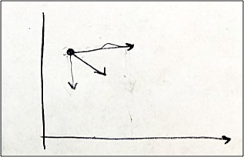 Daniel: The way I read this diagram [the graph in Figure 8] is that this point [the point on the graph in Figure 8] is being pushed right and down at the same time. I was a physics major in my undergrad. So, this is my physics thinking poisoning my teaching. When I see an arrow I think like a push, like a force, like a vector. I read this graph as a point is being pushed horizontally and vertically at the same time, which produces a diagonal push. I like to think about it this way, like to me, this is a really nice way to think about lines. But it’s a hard way to think about it.