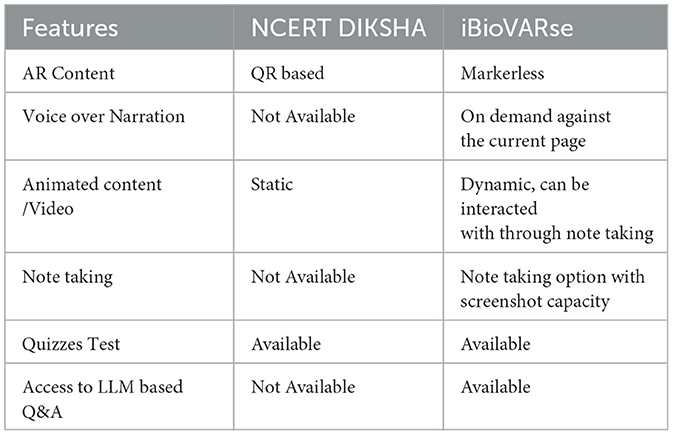 Table 1. Comparison of the features between NCERT DIKSHA and iBioVARse applications (table adapted from Saindane et al., 2023b).