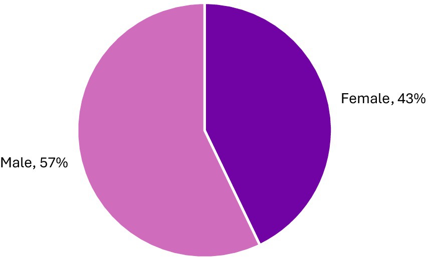 Our sample is characterized by a gender distribution of 43% female and 57% male (Figure 3).