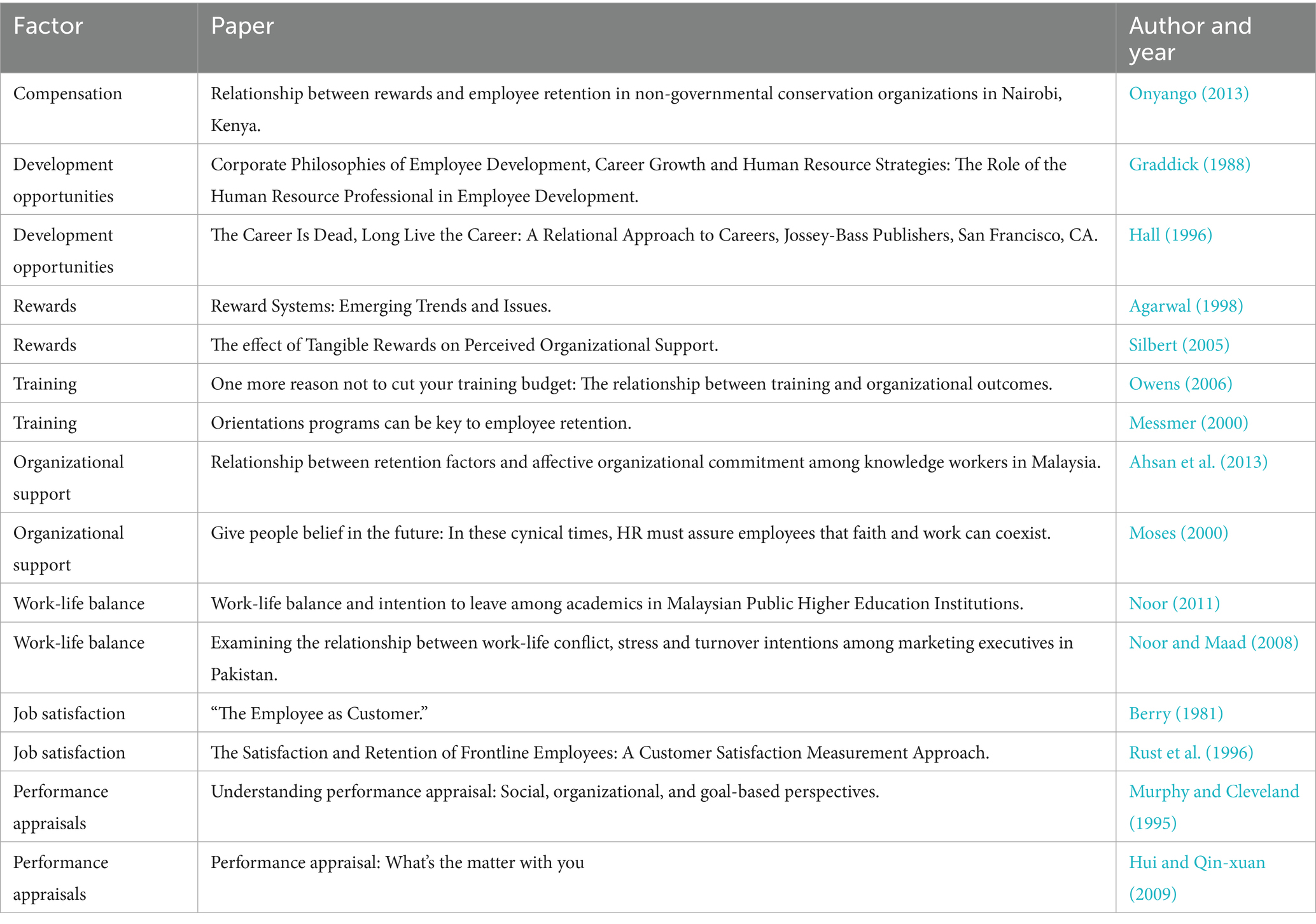 Chatzoudes, D., and Chatzoglou, P. (2022). Factors affecting employee retention: proposing an original conceptual framework. Int. J. Econ. Bus. Adm. 10, 49–76. doi: 10.35808/ijeba/748
