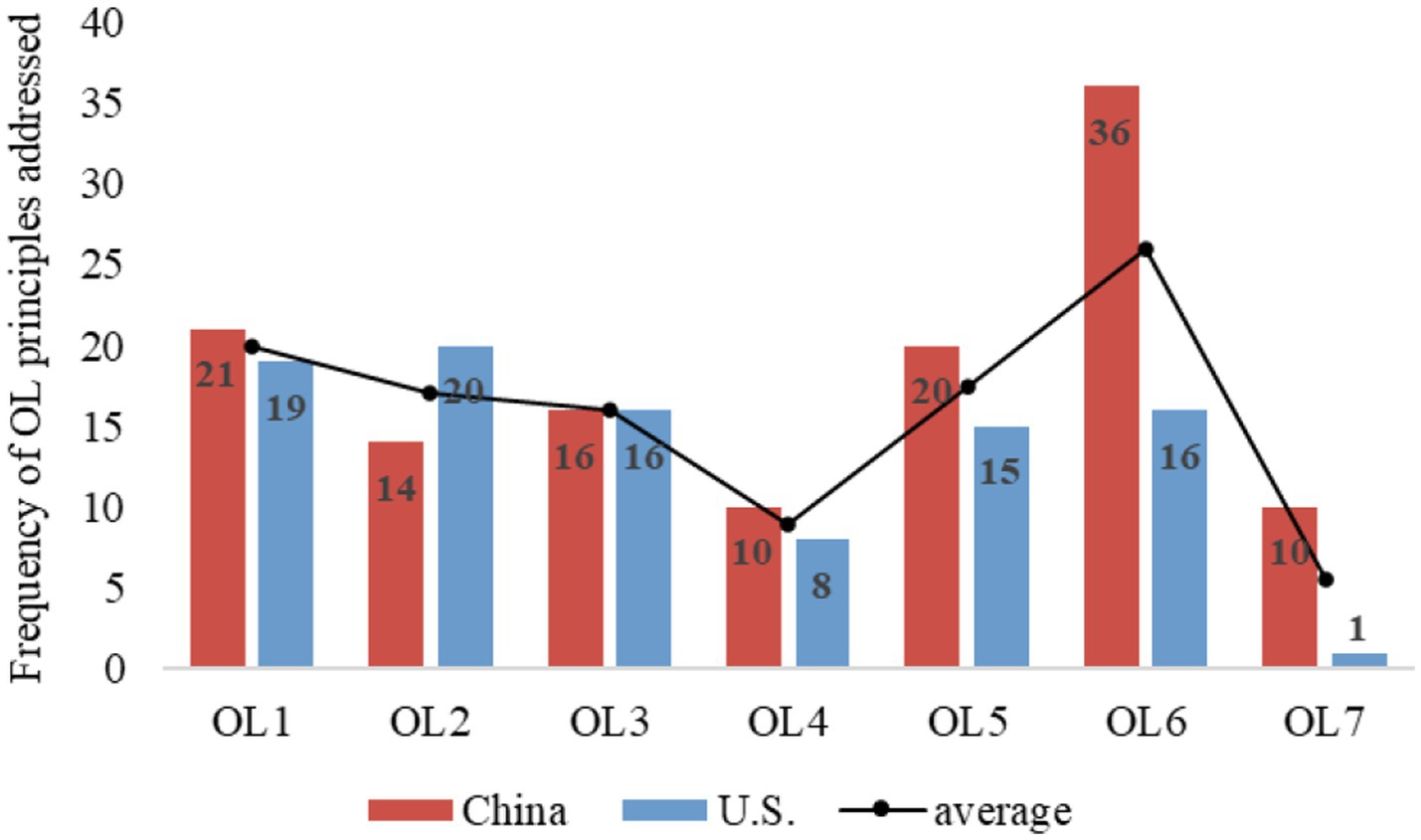 Figure 3. Scope of coverage and quantity distribution of OL principles in the science curriculum of China and the United States.