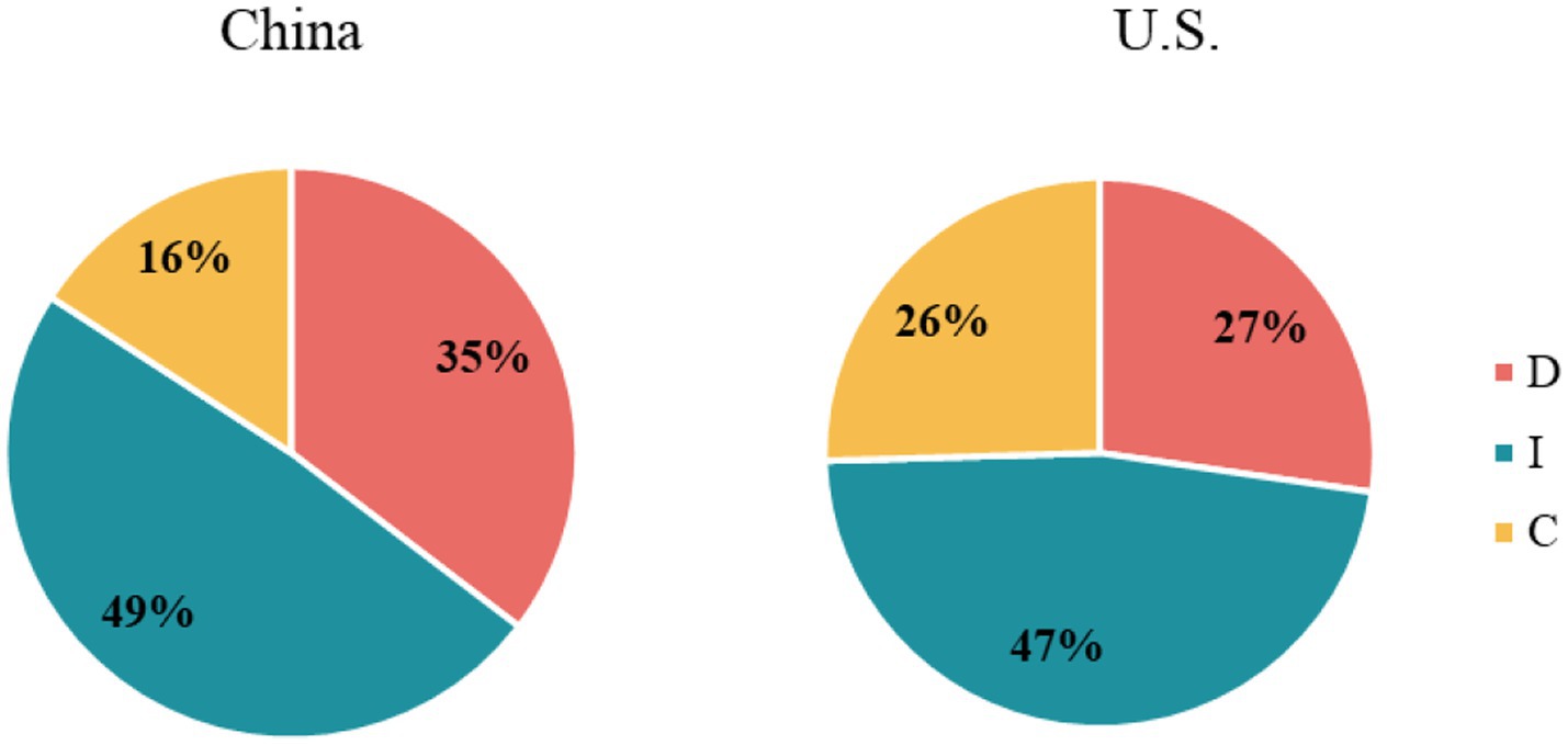 Figure 4 illustrates the proportional distribution of OL grading ranks in the science curriculum of China and the United States. Although both countries primarily adopt Grade I as the primarily grading rank, the proportion of Grade D in China’s science curriculum is higher than in that of the United States. In addition, in the U.S. curriculum, the proportion of Grade C is nearly equal to that of Grade D. This finding diverges from the results previously reported by Chang et al. (2021), which indicated that ocean-related content in the NGSS was mostly Grade D. This may be attributed to the “Case” criterion introduced in this study, which classified content directly related to OL within the Condition and Clarification Statement into Grade C. This phenomenon also reveals the divergent pathways of incorporating OL into science curricula: China tends to integrate OL related ocean concepts directly into Behavior content, while the United States places greater emphasis on using OL based instructional cases to convey Behavior content.