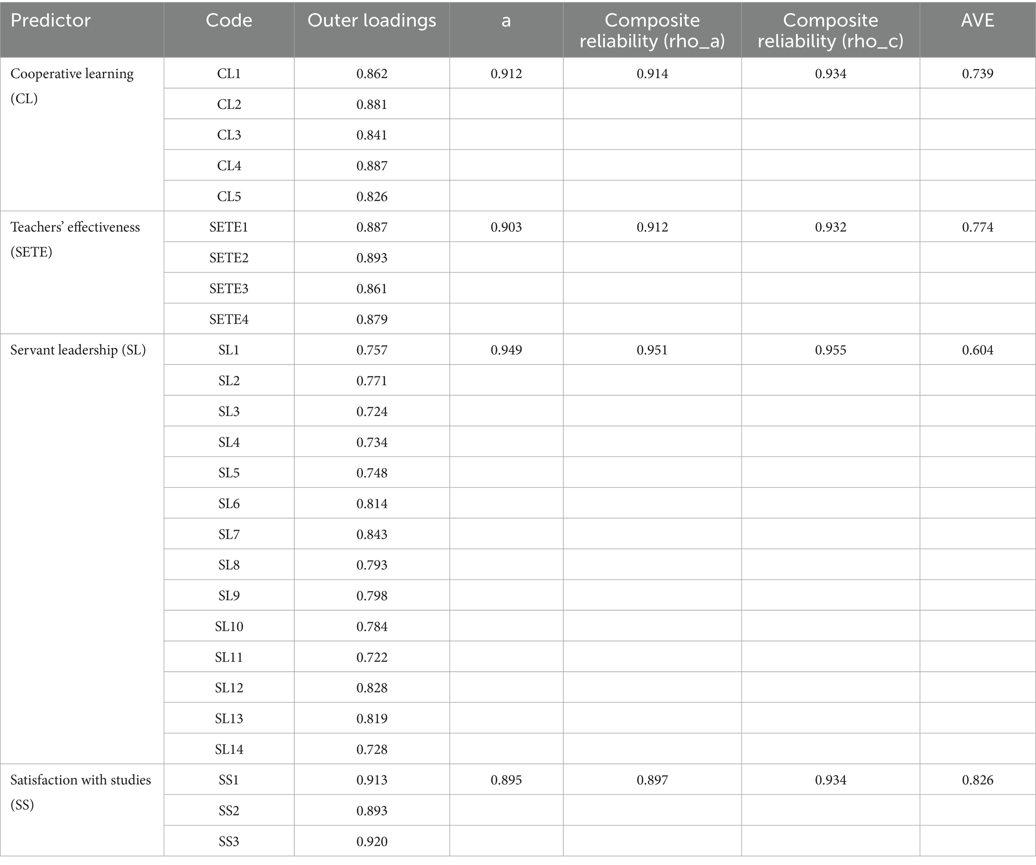 Teacher effectiveness has been widely debated, with theoretical and empirical approaches seeking to identify the characteristics that define a good educator. Recent research suggests that teacher effectiveness depends not only on classroom experience but also on factors such as a healthy teacher-student relationship, empathy, and teacher enthusiasm (Kuzmanovic et al., 2012; Rocha, 2013). However, studies have shown that experience does not always translate into greater effectiveness; some novice teachers may be more dynamic and innovative than their more experienced colleagues (Hoque et al., 2020; Saeeda et al., 2021). Continuous assessment of teacher effectiveness is crucial to improving educational quality and ensuring that learning experiences are meaningful and adaptive to the needs of students and the global environment (Ayaneh et al., 2021). Finally, it is worth highlighting that all the proposed hypotheses were accepted. However, regarding Hypothesis 6, the structural model confirmed that satisfaction with studies mediates the influence of teachers’ effectiveness on servant leadership. Although the direct effect was statistically accepted, its effect size was small (β = 0.028), indicating that the impact of teachers’ effectiveness is primarily indirect through student satisfaction, which emerges as a key factor in the development of servant leadership.