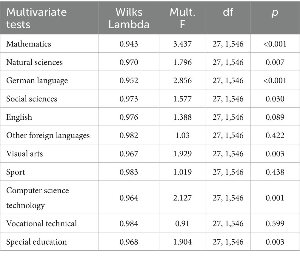 Prior to conducting the MANOVA, standard assumptions were examined, including normality of residuals, linearity, and homogeneity of variance–covariance matrices. No violations were detected, and the data met the assumptions required for valid interpretation of MANOVA.