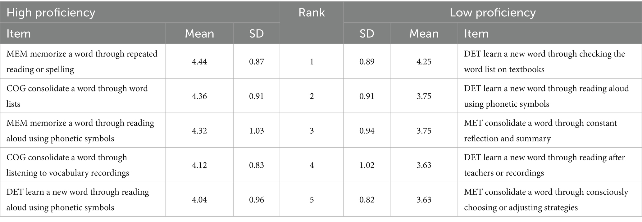 2 What VLS do first-grade senior high school students perceive as the most and least useful? Do these perceptions differ across learners with varying language proficiency levels, and if so, how?