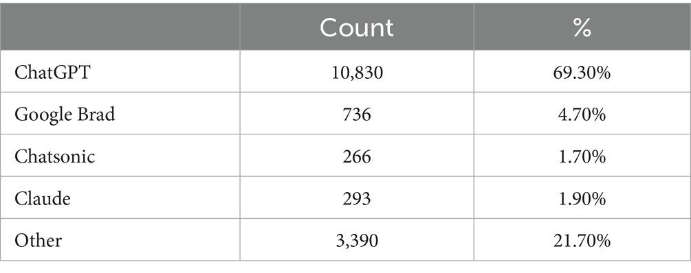 First, do students use AI applications? Which ones do they use, and for what purposes? It was hypothesized (H1) that most students have used at least one AI application (von Garrel and Mayer, 2023; Kalmus, 2025). We also predicted (H2) that students primarily use AI tools for completing school assignments, especially homework. Prior studies have found this to be one of the most common use cases (Malik et al., 2023; Grassini, 2023).