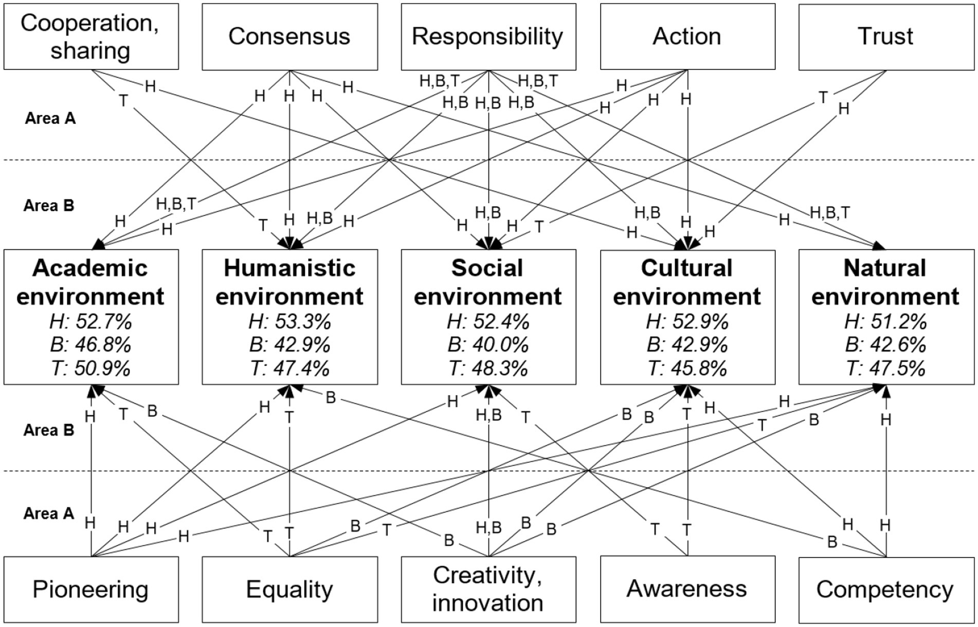 The present study clarifies that quality culture functions as a shared system of beliefs and practices rather than a set of procedural requirements. By applying Nguyen and Le’s (2019) integrated model, we demonstrated that distinct environments, academic, humanistic, social, cultural, and natural—are differentially shaped by specific value dimensions, particularly responsibility and innovation.