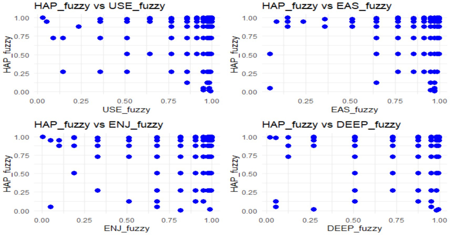 Multiple sufficient configurations predicted faculty happiness, with high consistency (≥ 0.947) and strong proportional reduction in inconsistency (PRI ≥ 0.939). The dominant pathway (Configuration 16) combined high usefulness, ease of use, enjoyment, and adoption. Other pathways indicated that ease of use and enjoyment alone could foster happiness, even at lower adoption levels. One pathway (Configuration 8) suggested that perceived potential—rather than actual adoption—was enough to enhance happiness (Table 4).
