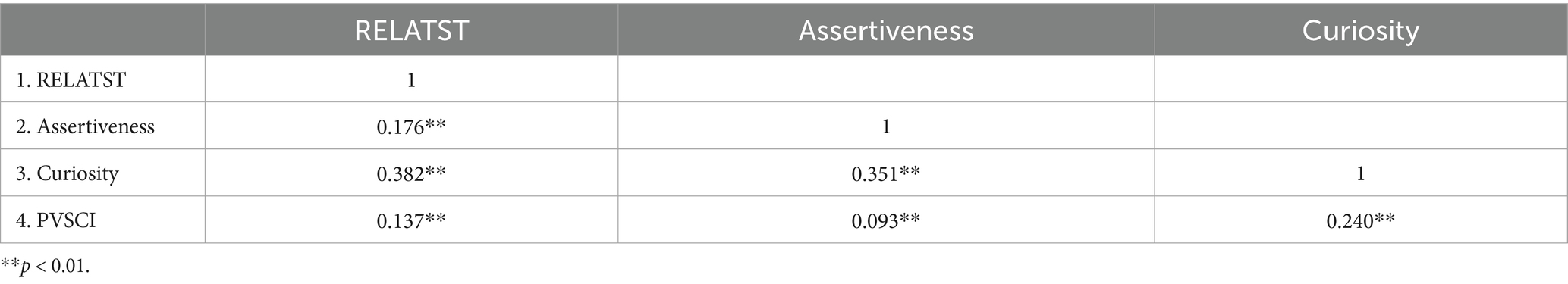 These studies emphasize the necessity of supporting curiosity in educational structures as it is consistent with improving academic performance and engagement in science. Neurologically based studies also prove that curiosity helps in learning (Gruber et al., 2014). Moreover, the mediating role of assertiveness influences the relationship between teacher–student relationships and academic achievement (Xu and Qi, 2019). This also aligns with Oraon’s (2024) findings, which highlight the significant relationship between assertiveness and academic achievement among school students. They advocate for strategies aimed at enhancing assertiveness in educational environments to boost performance. Also, Cui et al. (2020) in their study of teacher–student relationships and assertiveness in learning, which were measured using questionnaires adapted from PISA 2012, the results showed that teacher–student relationships, assertiveness in learning, and related academic achievements were all statistically significantly related to each other. In addition, other studies prove that assertiveness can play a pivotal role in better academic performance (Putwain et al., 2013). Assertiveness ability improves psychological-social skills, academic achievement, and self-confidence. Emotional self-regulation helps people identify their emotions and helps them succeed in academic achievement and social interactions. Student–teacher relationship quality has a major role in regulating emotions and improving academic achievement and social interactions (Khalooei et al., 2022).
