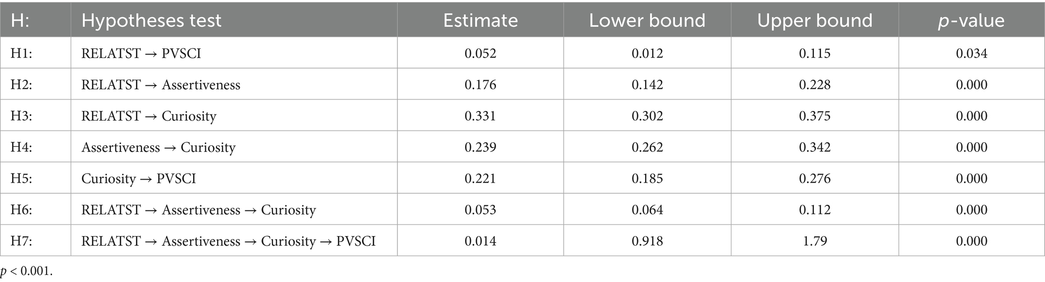 Table 7. The analysis of the intermediation of assertiveness and curiosity in the relationship between the quality of the student–teacher relationship and science achievement.