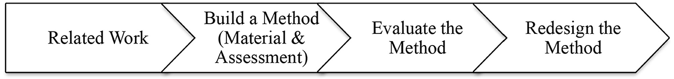 This study adopted a multi-stage, iterative research design that combined literature reviews, in-depth interviews, workshops, and experimentation sessions to develop and refine the proposed course redesign method (E4CAM). The development process was informed by a comprehensive literature review on competency-based education and course assessment frameworks, followed by in-depth interviews and workshops with instructors to identify practical needs and constraints in aligning courses with the Education 4.0 competencies. These iterative stages ensured that E4CAM was conceptually grounded in theory while remaining directly applicable to teaching practice. The process unfolded in three main phases: initial development, pilot testing, and subsequent refinement based on feedback.