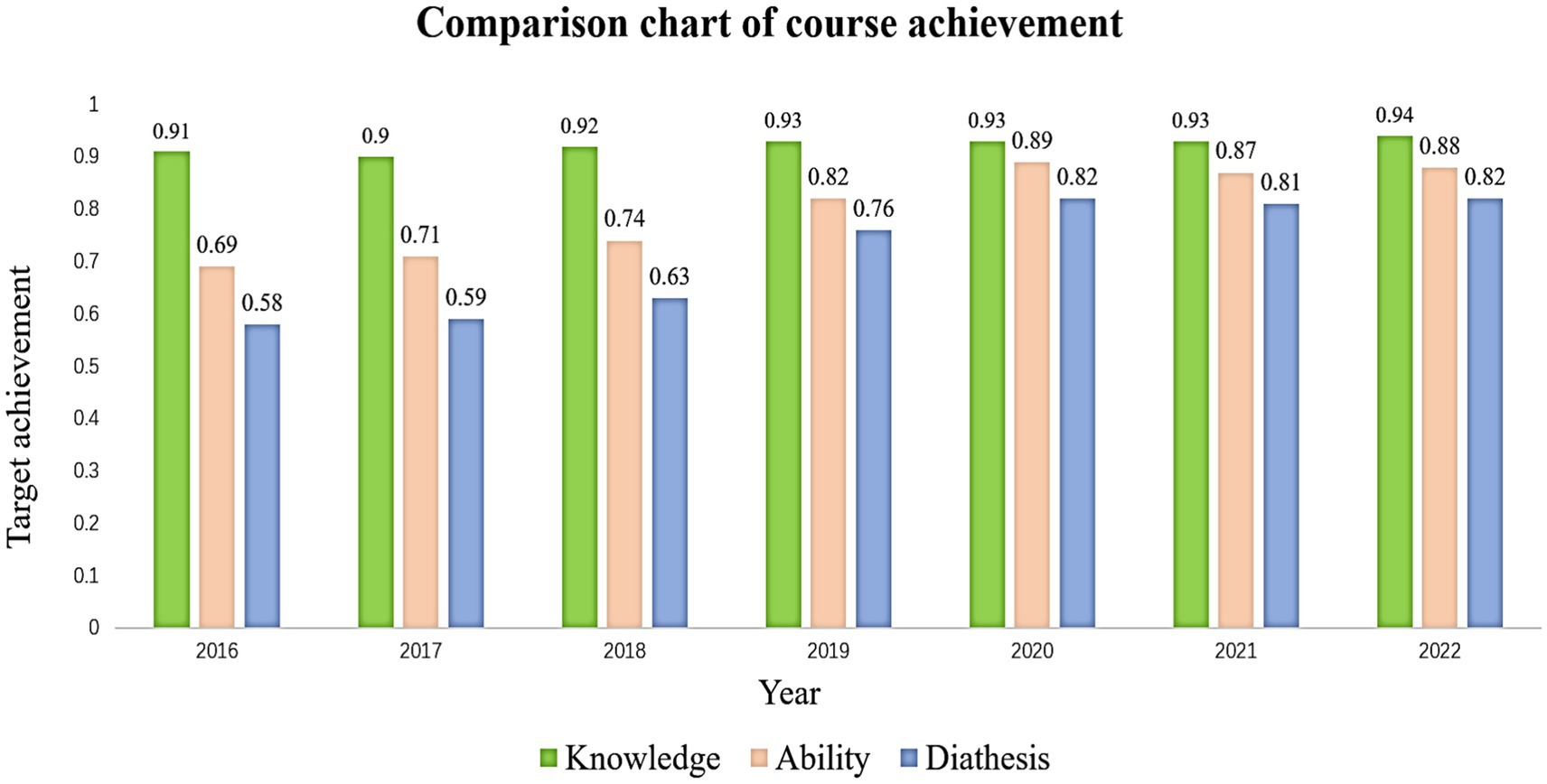 The quality of course resources is a decisive factor in the successful implementation of intelligent teaching. Therefore, the teaching team has been diligently constructing and cultivating high-quality teaching resources in recent years. Success has been achieved in six aspects: online teaching, practical case studies, industry-education integration, science-education integration, teaching competitions, and educational reform projects, with several attaining national or provincial recognition. Table 1 shows that all these achievements have been seamlessly integrated into daily undergraduate teaching resources, facilitating the transformation and upgrading of the resource supply side. The sharing of these high-quality resources lays a foundation for achieving the goal of cultivating high-quality, innovative talent.